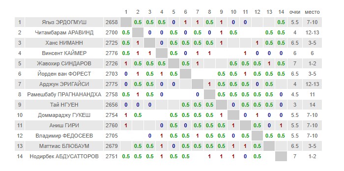 Интересно, какую партию предпоследнего тура выберет ЕГ. Предугадать, в какой из них сюжет окажется интересным, совершенно невозможно, по-моему. Но я бы выбирал между двумя партиями преследователей: Ниманн - Гукеш и Ван Форест - Эригайси. (Наверное, остановился бы на первой)