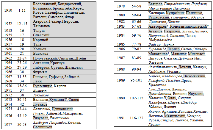 Все советские международные гроссмейстеры (получившие это звание "при жизни" СССР)