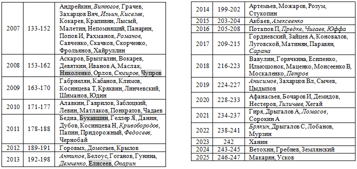 Таким образом, этот список включает в настоящий момент 212 гроссмейстеров (180 представляют ФШР и 32 числятся под флагом ФИДЕ).