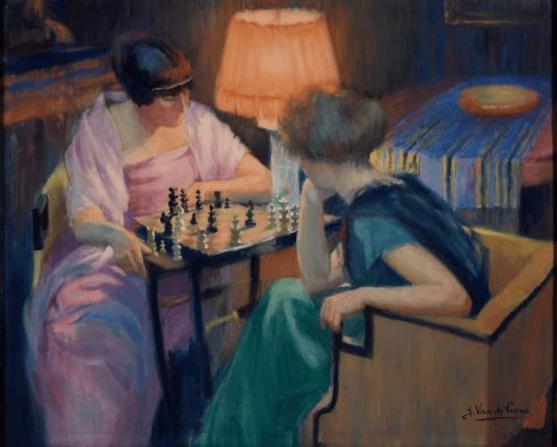 | The Chess Game, Jules van de Leene (Belgian, 1887 - 1962) Het Schaakspel |