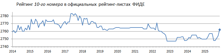 В сентябре 2024 года средний рейтинг топ-50 составлял 2721,2. В 2025 году он был 2722, то есть вырос на 0,8 очка. Однако рейтинг игроков с 51-го по 100-е место упал с 2654,4 до 2649.