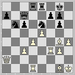 с) 16.e5 cxd4 17.Qxd4 Nd5 18.Bxd5 Bc5+/= (особой тонкости тут нет: 18...exd5?? плохо ввиду 19.Qxb4) 19.Qd3 (если 19.Qe4 exd5 20.Nxd5, то 20...Nf6!!, и белые вынуждены играть 21.Nxf6+ gxf6=, где у них есть не более равенства: 22.Bd2 fxe5 23.f5 Qd4!) 19...exd5. Может быть, белые могут здесь решиться забрать пешку - 20.Qxd5!? (20.Kf1 g5!? Сакаев, Емелин) с примерным 20...Qe7 21.Kf1!?. Отсталость в развитии налицо, но белые пока контролируют все ключевые поля в своем лагере и мат получить, вроде бы, не должны... Разумеется, шансы на ничью у черных есть при любых обстоятельствах.