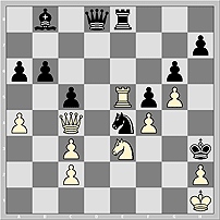 19...Qb1+ 20.Re1 Qxe1+! 21.Nxe1 Rd8!!, и черные выигрывают. Не помогает перевод белого ферзя на 1-ю горизонталь: 17.Qb3 Qd6 18.Qb1 Qd2 19.Rh3 Bxf4 20.Qg1+ (на 20.Nxf4 проще всего 20...Qe1+! 21.Qxe1 Kxe1, и черные пешки решат исход борьбы) 20...Ke2 21.Nxf4+ Qxf4 22.Rg3.
