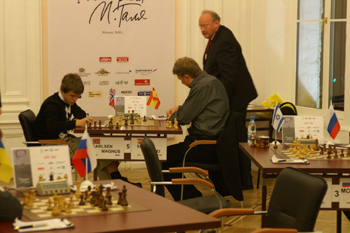Закончившие игру последними в этот вечер - Гельфанд и Морозевич не стали заходить в пресс - центр: к этому времени вся журналистская рать разбежалась, и Рошаль не стал их приглашать к обязательному разговору в пустую комнату.