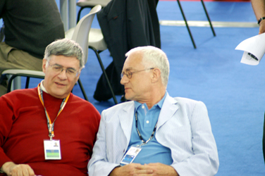 А вот это фото, из ранее мною не публиковавшихся. Сделано оно в Турине и случайно не попало ни в один из 5-ти моих олимпийских репортажей. Мне кажется, что уже в Турине Александр Бах знал о том, что проведет Мемориал Таля в Москве (а он таки знал) и в этот самый момент, который я запечатлел с трибуны туринского Овала он об этом говорит своему другу.