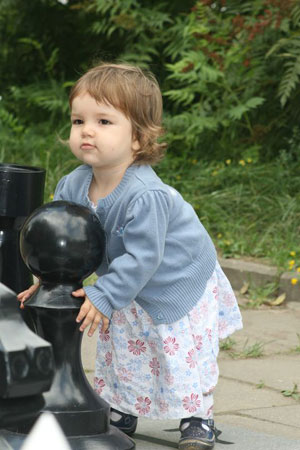 Шахматы спортивно-прикладные, с элементами бега. К часам подбегает гостья из Ленинградской области Евгения Овод.