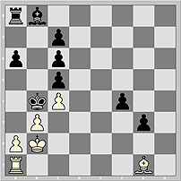 36) 1937 Черные хотят сыграть 1...Qxc7 2.Rxc7+ Kxc7+ 3.Ka7 Rb8, организуя вечное преследование неприятельского короля. Сорвать замысел противника удается единственным способом. 1.Ka7! Qxc7! 2.Rxc7+ Kxc7 3.Qd2!! Упускает победу 3.Qh2? Rb8! 4.Qxe5+ d6=. А сейчас на 3...Rb8 белые приготовили 4.Qd6+!! Kxd6 5.Kxb8 g5 6.Kb7 g4 7.Kb6 g3 8.a3 g2 (8...ba 9.b4) 9.ab g1Q 10.bc #. 3...g5 4.a4! (4.a3 Rb8!=) 4...Rb8 После 4...bxa3 5.Qa5+ черные быстро проигрывают (5...Kd6 6.Kb7 или 6.b4; 5...Kc8 6.Kb6 d5 7.Kxc6 или 7.Qa8+). В случае 4...g4 решает как 5.Qh2!? Rb8 (5...d6 6.a5 ) 6.Qxe5+ d6 7.Qh5! , так и 5.a5 g3 6.a6 Rg8 (6...d6!? 7.Qg2 Rg8 8.Qh3 g2 9.Qh7 ) 7.Qa2 g2 8.Qa5+ Kc8 (8...Kd6 9.Kb7) 9.Qb6 . 5.Qxd7+! Kxd7 6.Kxb8 g4 7.a5 g3 8.a6 g2 9.a7 g1Q 10.a8Q Qg8+ 11.Kb7 Qxa8+ 12.Kxa8 Kc8 Игра перешла в пешечный эндшпиль, в котором белым еще предстоит доказывать выигрыш. 13.Ka7 Kc7 14.Ka6 Kd7 15.Kb7 Kd6 16.Kb6 Kd7 17.Kxc5 Kc7 18.Kxb4 Kb6 19.Ka4 Равноценно немедленное 19.c5+ Kb7 20.Ka5 Ka7 21.b4 Kb7 22.b5 cb 23.Kxb5 Kc7 24.Ka4 (но не 24.c6? Kd6! 25.Kb6 - пат) 24...Kc6 25.Kb4. 19...c5 20.b4 cb 21.Kxb4 Kc6 22.c5 Kc7 На 22...Kb7 следует 23.Ka5! Kc6 24.Ka6 Kxc5 (24...Kc7 25.Ka7) 25.Kb7 Kc4 26.Kc6 Kd3 27.Kd6 Kxe4 28.Ke7 . 23.Kb5 Kb7 24.c6+ Kc8! Ситуация, хорошо знакомая в теории пешечных окончаний: белые передают сопернику очередь хода, описав королем треугольник. 25.Kc4 (25.Kb4) 25...Kd8 (25...Kc7 26.Kc5 Kc8 27.Kd6 Kd8 28.c7+) 26.Kb4! Kc8 27.Kb5! Kb8 28.Kb6 Kc8 29.c7 Kd7 30.Kb7 Kd6 31.Kb8 (или 31.c8R, но не 31.c8Q? - пат).
