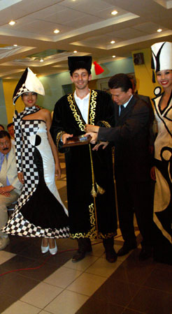 Президент ФИДЕ Кирсан Илюмжинов всем, кто завоевал путевки на чемпионат, выдал по калмыцкому костюму.