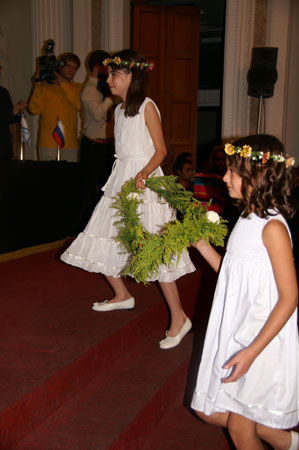 Затем, медаль, венок и одеяло водрузили на Ананда и дали ему в руки большой букет.
