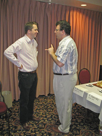 Э.Сутовский и Н.Шорт о чем-то оживленно беседуют. |