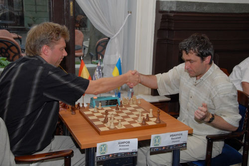 В партии Широв-Тукмаков, по свидетельствам соперников, после сделанного Тукмаковым хода продолжили идти часы одессита. Лампочка продолжала гореть на стороне Тукмакова, что он вскоре заметил и нажал часы вновь. Дело было в уже выигранном для Широва эндшпиле. Подробнее пускай разбираются часовых дел мастера. Правда также и в том, что Ешан разрешил своим приездом вопрос с трансляцией, ну а безупречных часов не бывает. (Как-то в Бундеслиге, в жестком обоюдном цейтноте партии с Эманнуэлем Бергом, попросту обнулились часы - и мои, и соперника. Слова богу, ситуация в матче позволила согласиться на ничью).