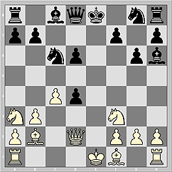Ларсен пишет, что "лучше 8...Be6 (и если 9.Nd5?, то 9...B:d5 10.cd Nb4)". Ну... шут его знает. Ход 8...Be6, конечно, идейный (черные показывают, что готовы к d6-d5), но так ли он хорош - не очень ясно. Во-первых, после 9.0-0 d5 10.cd N:d5 11.Na4 в ответ на любую защиту пешки с5 у белых есть ресурсы: 12.d4 и 12.Nf4!? Черные могут пожалеть, что так рано вскрыли центр - а если не вскрывать, то чем, собственно, 8...Be6 "лучше" рокировки? Да и вариант 9.Nd5 B:d5 10.cd Nb4 следует как минимум продлить: 11.0-0 Nb:d5 12.Nc3 N:c3 13.dc Qd7 14.c4. Возможно, компенсация за пешку потом окажется недостаточной, но пока позицию белых впору печатать на рождественской открытке.