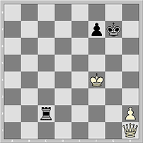 4.Ke3! (после 4.Ke4? Re2+ или 4.Kg3? Re2 ладья неизбежно попадает на е6) 4...Rf6 5.Qa1! Kg6 6.Kd3! Rd6+ 7.Kc4 Re6 (7...Kh7 8.Qa3! и Qf8) 8.Qh8!, выигрыш.