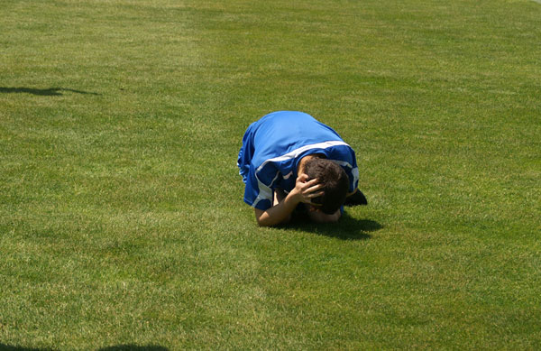 Это лежит на поле Чепаринов, заменивший Адамса. Он упал от столкновения с не заметившим его Мамедьяровым.