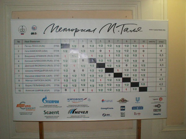 Оксана Костенюк и Константин Ланда. А над ними – Игорь Бурштейн, автор до мелочей совпавшего прогноза на исход турнира (кто не понял – читайте репортаж с открытия Мемориала).