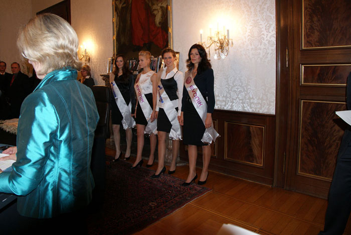 Фрау обер-бургомистра сопровождала небольшая стайка девушек, у которых через плечо были ленты с названиями фирм-спонсоров: "Gazprom" и "Evonik". Это они внесли самый весомый вклад (1млн 500 000 Евро).