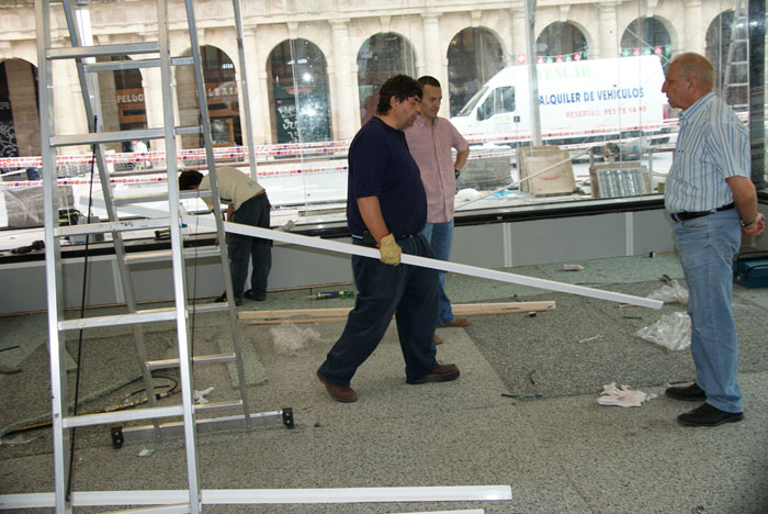 Пришли на площадь, которая называется "Нуэво" (я понял, что это "новая"?). Каре старинных домов. По бокам кафе. А в центре… В центре полным ходом шли, мягко говоря, "последние приготовления".