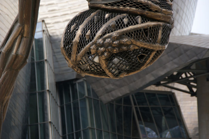 Когда я ехал из аэропорта, то ночью заметил у одного сооружения, облицованного металлом (это был всемирно известный музей Гуггенхайма), страшненького паука.