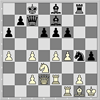 Черных выручает типичная жертва двух слонов: 19...Bxh2+!! 20.Kxh2 Qh4+ 21.Kg1 Bxg2! 22.f3! (единственная попытка борьбы за победу) 22...Bxf3! 23.Rd2 Qe1+ 24.Bf1 Qg3+ 25.Rg2 Bxg2 26.Bxg2 Qe1+ 27.Bf1 Qg3+ 28.Kh1 Qh4+ 29.Kg2 Qg4+ (29...Rc8) 30.Kf2 Qxd4+ с вероятной ничьей.