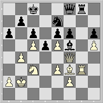 Чёрные вынуждены принимать срочные меры против конкретных угроз соперника, связанных с эвентуальным h5-h6. Рассмотрим возможные решения чёрных: а) Не проходит 23...Nxb2 24.Kxb2 d4 25.Ne2 Qb4+ 26.Ka1 Qa3 27.Nc1 Qc3+ 28.Kb1 Qb4+ 29.Nb3 ± и белые остаются с лишней фигурой и всеми возможностями для продолжения атаки; б) Запаздывает контратака на пункт b2 23...Qb4 из-за 24.Bxc4 bxc4 25.Nxd5 Bxd5 26.Rxd5 Rb7 27.Qd4 ±