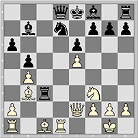 В партии последовало 14...Bxg2+?! 15.Kxg2 Qb7+ 16.Qf3 Ne4 (эндшпиль после 16...Qxf3+ 17.Kxf3 можно назвать триумфом дебютной стратегии белых) 17.Rac1 с очевидным преимуществом белых. Более перспективную игру обещало чёрным 14...Rd8!? Во всех вариантах белым непросто доказать свой перевес: