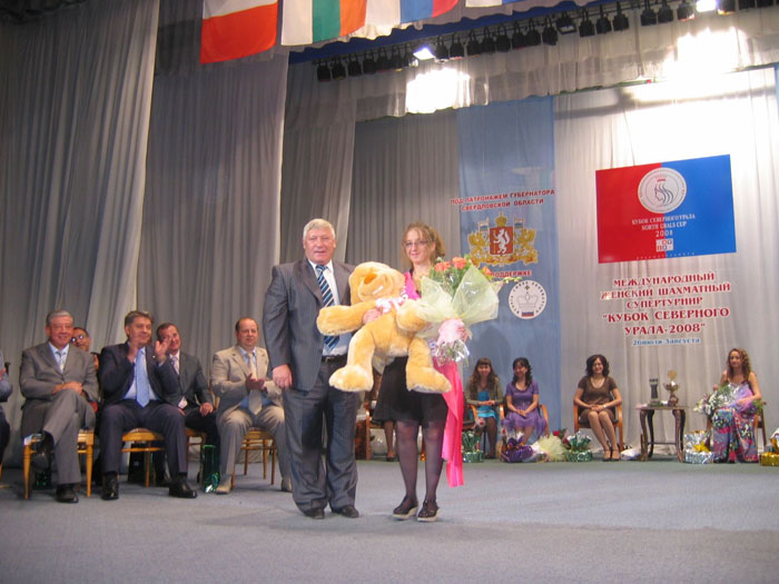 Особенно опекали организаторы единственную российскую участницу. Приз Наталье Погониной от партии «Единая Россия», естественно, символ партии – медведь. И от спонсоров турнира кампании «Савиак» – DVD-проигрыватель.
