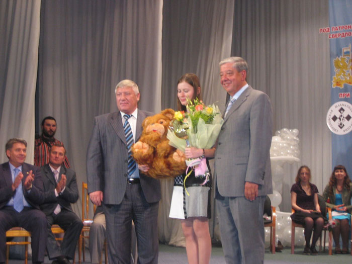 Серебряная корона на голове победительницы и королевы турнира, экс-чемпионки мира Антуанеты Стефановой. Немалую долю труда в победу подопечной вложил тренер гроссмейстер Владимир Георгиев. |