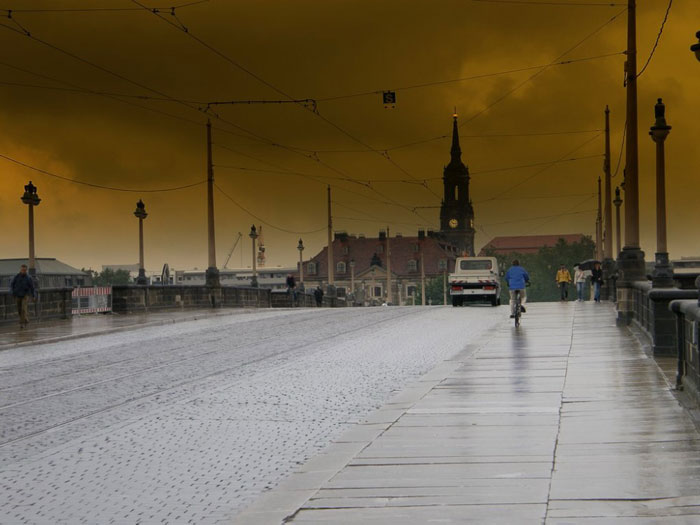 К моему удивлению, оказалось, что Дрезден, именуемый «Флоренцией на Эльбе», был основан на месте славянской рыбацкой деревеньки, первое упоминание о которой датируется 1206 годом. В 15 веке здесь располагалась резиденция саксонских герцогов, а позднее – и королей. В 18-м веке город стал центром европейской политики, экономики и культуры. В конце второй мировой войны он был практически разрушен бомбардировками британских и английских ВВС, а уже в начале нынешнего века был частично смыт вследствие гигантского наводнения. Но в достаточно короткие сроки все повреждения, нанесенные стихией, были восстановлены, и передо мной Дрезден предстал во всей своей немного сероватой красе, потому что солнце пряталось за тучами, землю периодически штопал дождь и туристы были вынуждены смотреть «налево и направо», спрятавшись под зонтиками. Честно говоря, 16 июня оказалось не самым подходящим сроком для визита, поскольку не только дрезденцы, а все немцы жили исключительно футболом, и первые полосы вышедших накануне газет украшали портреты Михаэля Баллака, ставшего на пару дней национальным героем.