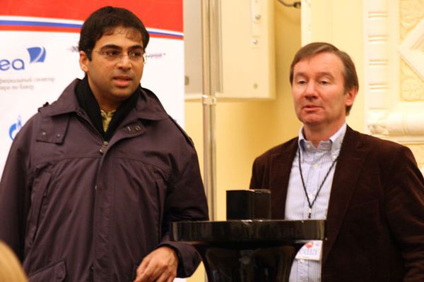 Рабочий день закончен. Виши Ананд и главный редактор «New in Chess» Дирк Ян тен Гезендам.