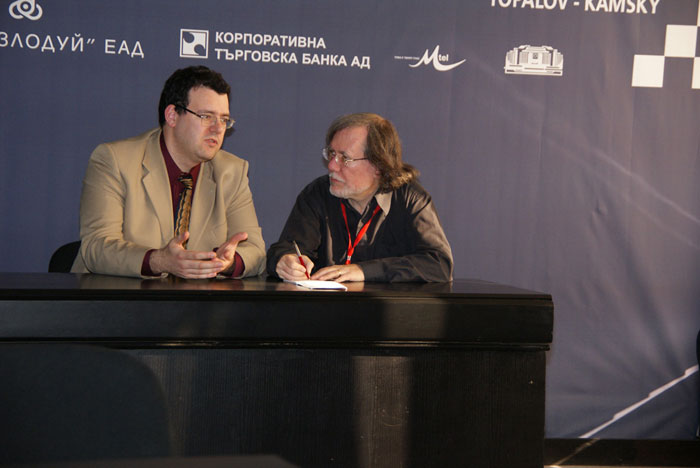 Начало партии сопровождалось некоторой суетой вокруг кресла Камского. Гата просил его приподнять на должный уровень с Топаловым.