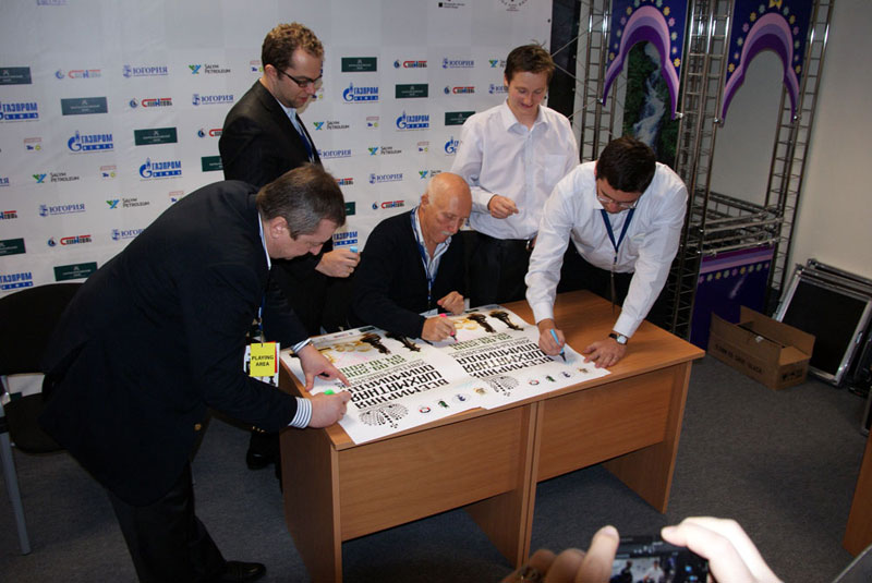 Мгновенно, как только проиграл Свидлер, на всех досках последовало соглашение на ничью. И команда Иванчука переместилась в пресс-центр, где отвечала на вопросы журналистов и подписывала афиши.