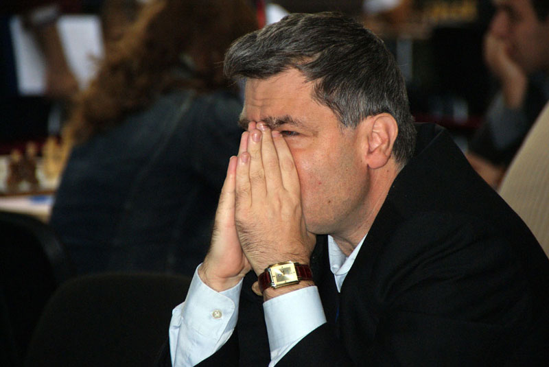 - Надо сказать, что начало Олимпиады сложилось для нас весьма неудачно. Оба наших лидера – Иванчук и Пономарев – заболели. Руслан пропустил две партии не потому, что были слабые соперники, а потому что он был не в состоянии играть. И фактически он весь турнир провел больным, не выздоровел до сих пор. Если на Василия недомогание не произвело большого впечатления, то на игровом тонусе Руслана сказалось. Так он до самого конца Олимпиады из этого полуболезненного состояния выйти не смог, но свою задачу-минимум выполнил полностью. Он не проиграл ни одной партии и удержал вторую доску. Успешно, как и в Кальвии, сыграл Павел Эльянов.