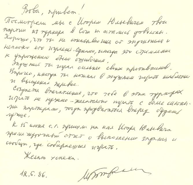 В конце сессии, когда уже становилось ясно, кому над чем надо работать, давалось домашнее задание. Мне, например, как-то задали посмотреть матч Корчной – Геллер, я тогда часто играл староиндийскую защиту. Ребятам давали задание посмотреть творчество тех или иных шахматистов, позиционных или, наоборот, более динамичных. Всего я побывал на четырех сессиях, и они принесли мне большую пользу.