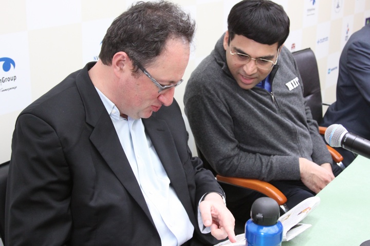 Мысли о 12 ничьих наверняка терзали и участников пресс-конференции. Как с той, так и с другой стороны. После 4-й партии Ананда с Гельфандом “пытали” минут 20, а на этот раз - в два раза меньше. Да и о чем спрашивать после такой партии?