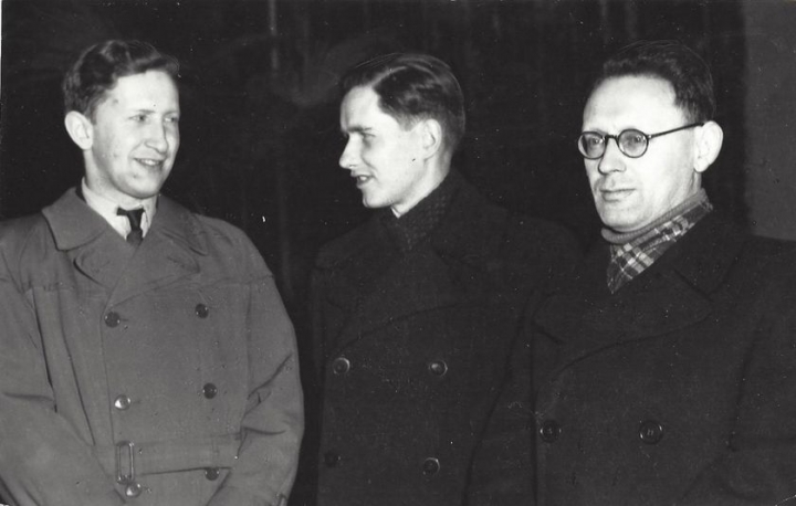 17 февраля 1948. В.Смыслов, П.Керес, М.Ботвинник. Фото: Е.Халдей.