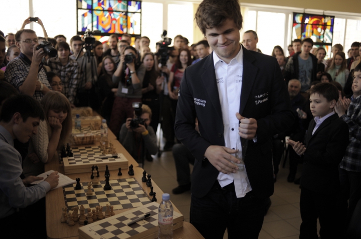 8 апреля Магнус Карлсен по приглашению Ассоциации выпускников Физтех-Союз и Runa Capital.гостил в Долгопрудном у студентов и преподавателей Московского физико-технического института. Чемпион мира ответил на многочисленные вопросы любителей шахмат и дал сеанс одновременной игры. Ведущей вечера была Тина Канделаки.