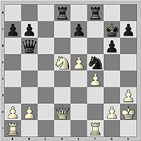 15…Kxg7. Чрезвычайно рискованно было бы 15…e4 из-за 16.Qh6! exf3 17.Bxg6 hxg6 18.Bh8 Kf7 19.Qg7+ Ke6 20.Rfe1+ Kd6 21.Qxg6+ e6 (конечно, не 21…Kc7 22.Rac1+ Kb8 23.Qg3+ и т.д.) 22.Qg3+ Kc6 (если 22…Ke7, то 23.Rxe6+!) 23.Rac1+ Kb5 24.Qd6!, и положение короля черных безнадежно (Б.).