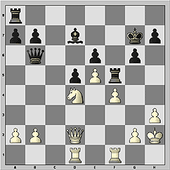 Вместо 24.Qd6?, что после 24…Qe7! отдает преимущество черным (25.Qc7 a5 или 25.a4+ Kxa4), верно 24.Qxf3 Ka6 25.b4 b5 26.Rc6+ Kb7 27.Rcxe6 Rxe6 28.Rxe6, хотя еще вопрос, есть ли у белых выигрыш после 28…Nb6 или даже 28…Qxh8.
