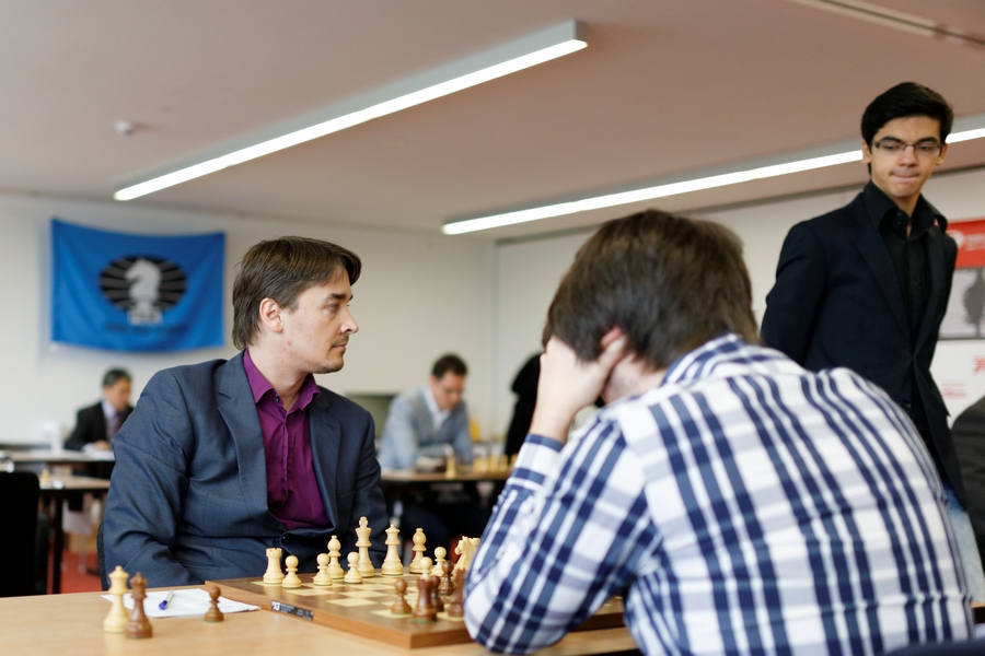 Другое редкое разветвление славянской встретилось у Карякина с Камским. Белые, очевидно, переоценили силу своих центральных пешек, вскоре после 20-го хода им пришлось думать об уравнении. Камский упустил несколько возможностей закрепить перевес, и к 35-му ходу компьютер высвечивал нули. Однако на сей раз российский гроссмейстер переоценил силу своей проходной, позволив тяжелым фигурам соперника хозяйничать у себя в тылу. Позицию еще можно было удержать, но первый ход после контроля оказался решающей ошибкой.