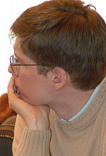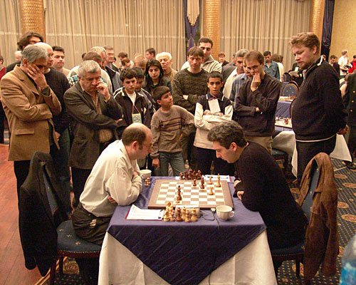 Однако сесть согласно жеребьевке удалось далеко не всем – вчерашний ураган вкупе с бушующей эпидемией гриппа сделали свое дело: вышел из турнира (еще до 1-го тура) белорус Александров, не добрался до «явки» румын Нисипяну (вместо него посадили Ткачева – и некоторые, знающие игроков лишь по фотографиям из ChessBase, внимательно рассматривали загривок Влада, силясь понять, зачем Ливиу-Дитер срезал свою знаменитую косу).