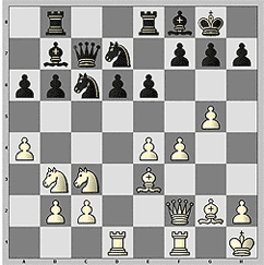40.е5?. У Карпова истекали последние секунды, и интуиция подсказала ему этот отчаянный ход, который, однако, ведет к немедленному проигрышу. Очевидное продолжение 40.Rxe8+ Qxe8 41.Nd1 Na3 42.Qd3 Ra2! Каспаров успел увидеть и оценить позицию, как выгодную для себя. Партия тогда бы была отложена, и изящный вечный шах - 43.g6! h6 44.Rxh6!+ Bxh6 45.Qc3+ Bg7 46.Qh3+ Kg8 47.Qb3+, несомненно, нашли бы дома оба соперника.
