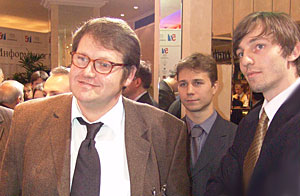 Чемпион России-2001 Мотылев, как обычно, серьезен. Как и его помощники – Вокарев и Наер. А вот дебютанту элитных форумов Алексею Коротылеву и его девушке хмуриться не пристало...