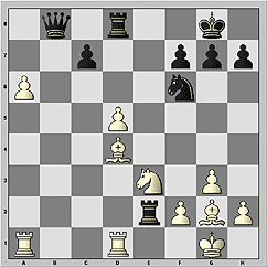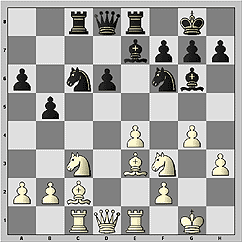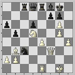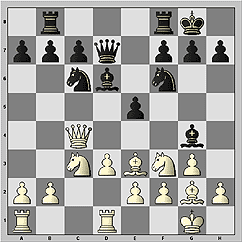 11...b5 12.Nxb5!? (можно было и отступить; вместо этого белые жертвуют ферзя за две легкие фигуры и… получают легкую игру) 12...Na5 13.Nxd6 Nxc4 14.Nxc4 Qe6?! Зная произошедшее, можно предложить 14...Bxf3 15.Bxf3 a6! 16.Nxe5 Qe6 17.Nc4 Nd5 и черным не на что жаловаться.