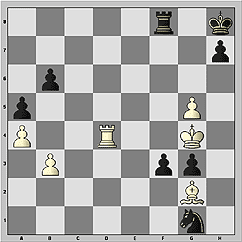 39...fxg3+ 40.Kh3 Rcf8 41.Qxf6+ Rxf6 (у черных уже лишняя пешка и инициатива) 42.Rd4 f4 43.Rf1 Rgf8 44.Rf3 Nd7 45.d6? (упорнее, конечно, 45.Re4!) 45...Ne5 46.d7 Nxf3 47.d8Q Ng1+ (неприятный промежуток) 48.Kg4 Rg6+ (и еще один) 49.Qg5 Rxg5+ 50.hxg5 f3. Белый слон погибает…