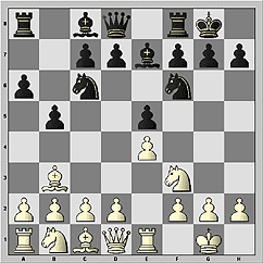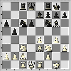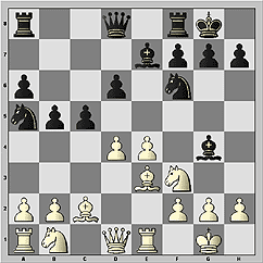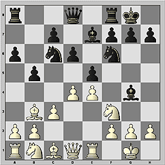14...Bh5 (здесь уже совсем нет смысла разменивать сильного слона) 15.g4 (наиболее агрессивный и следовательно опасный для обеих сторон путь) 15...Bg6 16.Nc3 Rc8 17.Rc1 Nc6 18.Be3. Обе стороны последовательно централизуют фигуры.