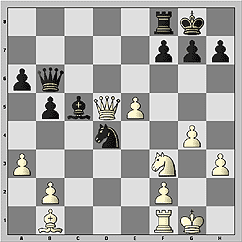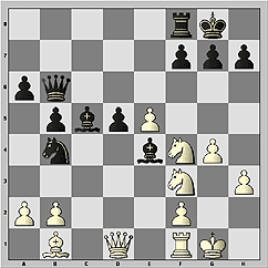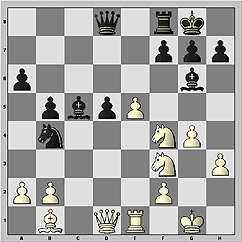 18...Nb4. Новинка. Эрнесто Инаркиев дважды на этом чемпионате проиграл эту позицию черными против неистового Домингеса – в серьезные и в быстрые шахматы. Он избирал продолжение 18...Re8 19.Nh4! Nd7 20.Nxg6 hxg6 после чего выяснялось, что владение белыми полем d5 важнее, чем контригра черных по черным полям. Например, в серьезной партии последовало 21.Bb3 Nc5 22.Nd5 Ne5 23.f4 Ned3 24.Bxc5 Nxc5 25.g5 Bf8 26.Qf3 Qa5 27.Rc3 Na4 28.f5! Qd8 29.h4 Nxc3 30.fxg6 fxg6 31.Ne7+ Kh7 32.h5 и атака белых приобрела решающий характер. Наверное, Рустам был не прочь повторить победный путь кубинского гроссмейстера. Но Майкл пошел своим путем…