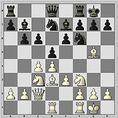 10...h6 11.Bf4. Отступали здесь слоном и на h4. Неплохо смотрится и лобовое 11.Bxf6 Nxf6 12.e4 и завоевать большую белую диагональ путем 12...dxe4 13.Nxe4 Nxe4 14.Bxe4 f5?! 15.Bd3 c5 черные не могут ввиду 16.d5! exd5 17.Bxf5 d4 18.Be6+ Kh8 19.Ne5+–.