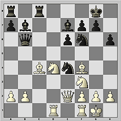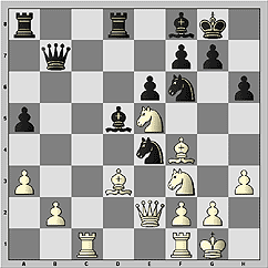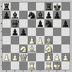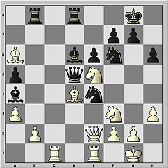 17...Nc5 18.Bc4 (18.Bb1 Ba6!) 18...Ncxe4. Итак, в результате бурных осложнений центр разгрузился. Черные получили как минимум равные шансы. Начинается маневренная борьба, в которой ни один из соперников не смог достичь большого прогресса.