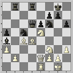 15.Nxb5. Не удается вскрыть минусы порядка ходов, избранного черными, и путем 15.dxc5 Nxc5 (15...Qxc5 16.Nxb5!) 16.Be3 Qa5 17.Bxc5 (17.e5 Nxd3 18.exf6 Nb4!) 17...Bxc5 18.e5 b4! 19.Na4 Rfc8 20.exf6 Bf8 и черные отыгрывают фигуру, получая хорошую позицию. Не дает реального перевеса и 15.Bxb5 Bxe4! 16.Nxe4 Qxb5 17.Bd6 Bxd6 18.Nxd6 Qb6 19.dxc5 Nxc5 и т.д.