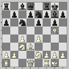 10...h6 11.Be3. Новинка. Впрочем, это стандартный маневр – вызвав h7-h6, белые планируют «наварить» темп после Qd1-d2. Раньше отступали слоном на другое поле – 11.Bh4, правда ничего особенного при этом белые не получали. Например, 11...d6 12.Qd2 f5 13.f4 b6 14.Rad1 Qc7 15.Bb1 b5! 16.cxb5 (надо все же проверять 16.Qxd6) 16...axb5 17.exf5 gxf5 18.Bf2 Ba6 19.Ng3 b4 20.Nce2 Bc4 21.b3 Bd5 и у черных отличная игра, Смирнов – Ни Хуа (Шанхай 2001).